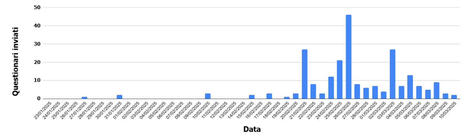 La fase di raccolta dei contributi degli utenti della consultazione Valutiamo l’impatto della normativa in materia di istruzione professionale si è aperta il 23 gennaio per concludersi il 10 marzo 2025 e ha ricevuto un totale di 230 risposte al questionario. Rispetto al periodo di apertura della consultazione, la distribuzione temporale delle risposte si è concentrata soprattutto durante le ultime 3 settimane di apertura: