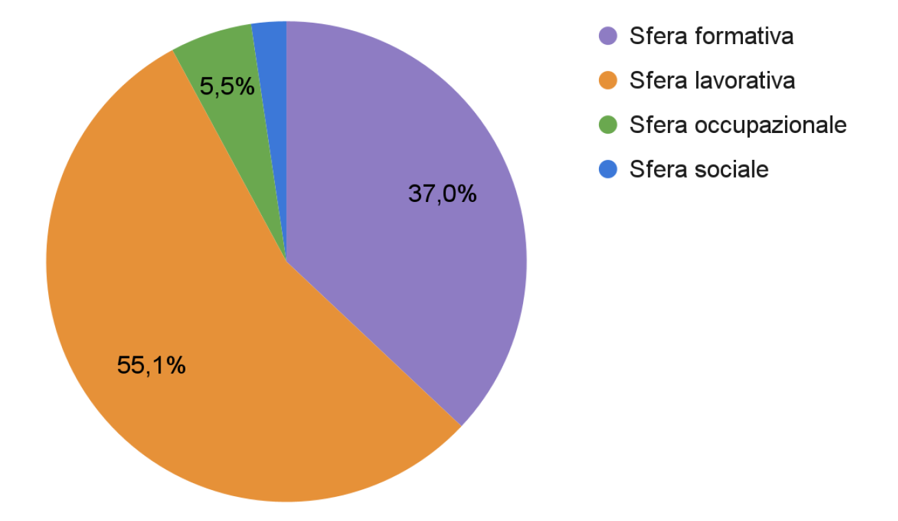 La domanda 9 del questionario chiedeva al partecipante di approfondire gli impatti che ha avuto l’intervento normativo sulla propria sfera individuale, facendo specifico riferimento ai seguenti aspetti: sfera formativa; sfera lavorativa; sfera sociale; sfera occupazionale. Il grafico seguente mostra la distribuzione delle risposte.