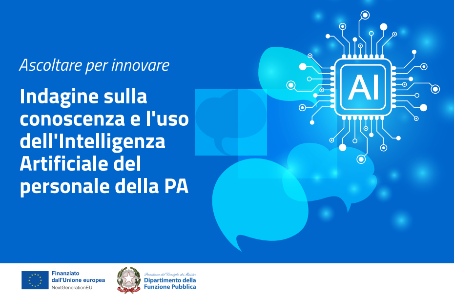 Il Dipartimento della funzione pubblica lancia un’indagine rivolta a tutto il personale del settore pubblico, con l’obiettivo di raccogliere informazioni preziose per comprendere meglio il livello di conoscenza, le modalità di adozione, le percezioni, le barriere e le prospettive future legate all’adozione dell'Intelligenza Artificiale nella Pubblica Amministrazione.